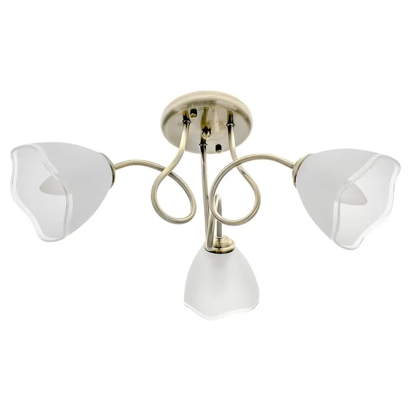 Люстра LK-602S/3 E27 AB выполнена в классическом стиле. Каркас цвета старого золота изготовлен из металла. Белые матовые плафоны в форме цветка сделаны из стекла. Люстра подойдет для освещения спальни, гостиной или столовой. Для работы люстры требуется 3 лампы с цоколем E27. Можно использовать светодиодные, энергосберегающие или лампочки накаливания. Рекомендуем использовать светодиодные лампы, поскольку они не нагреваются, экономят электроэнергию и не содержат вредных веществ.