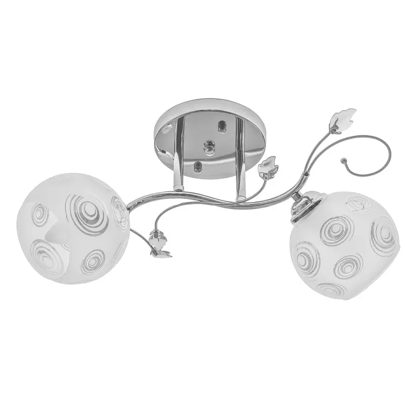 Простая люстра в классическом стиле LK-584S/2 E27 CH подойдет для освещения гостиной, спальни или прихожей. Металлический хромированный каркас дополнен декоративными элементами. Белые стеклянные плафоны в форме чаши украшены узором, напоминающим спираль. Небольшой размер люстры позволяет поместить ее в комнате с низким потолком. Для работы светильника требуется 2 лампочки с цоколем E27 мощностью 60 Вт. Подойдут светодиодные, энергосберегающие или лампочки накаливания. Рекомендуем использовать светодиодные лампы, поскольку они не нагреваются, экономят электроэнергию и не содержат вредных веществ. На всю продукцию действует гарантия.