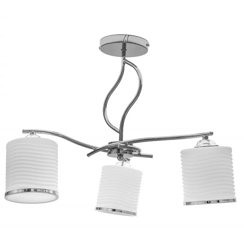 Люстра LK-590S/3 E27 CH выполнена в стиле модерн. Она состоит из металлического хромированного каркаса и стеклянных плафонов белого цвета. Плафоны в форме цилиндра имеют рельефную поверхность. Люстра будет хорошо смотреться в современном интерьере гостиной или спальни. Для работы люстры требуется 3 лампочки с цоколем E27 мощностью 60 Вт. Подходят светодиодные, энергосберегающие или лампы накаливания. Рекомендуем использовать светодиодные лампы, поскольку они не нагреваются, экономят электроэнергию и не содержат вредных веществ. На всю продукцию действует гарантия.