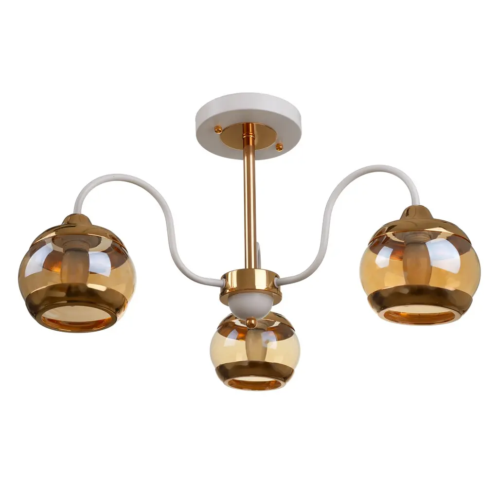 Люстра LK-661S/3 E27 WH+FG с лаконичным дизайном идеально подойдет любителям минимализма и классических интерьеров. Она отлично впишется в гостиную, холл, детскую или спальню. Крепится модель на монтажную планку. Высота изделия - 315 мм. В основе конструкции - прочный металлический каркас, состоящий из стержня, покрытого позолотой, и белых держателей плафонов. Круглые стеклянные плафоны с позолотой направляют световой поток вниз и равномерно его распределяют. Они обеспечивают в помещении приятное освещение и уютную обстановку. Люстра предназначена для работы в сети 220 В. Ее можно устанавливать только в помещениях (класс защиты светильника - IP20). Для работы люстры требуется 3 лампочки с цоколем E27 мощностью 60 Вт. Можно использовать светодиодные, энергосберегающие или лампочки накаливания. Компактные размеры, простой монтаж и привлекательный внешний вид сделали этот осветительный прибор очень популярным. Если нужно подобрать освещение для помещения большей площади, мы можем предложить модель на 5 лампочек (артикул 23-771).