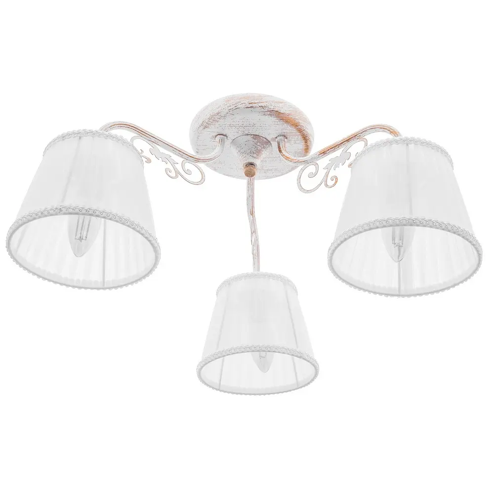 Люстра BKL-659S/3 E14 WH/G предназначена для создания уюта и комфорта как в жилом, так и в нежилом помещении. Наиболее подходящее место для нее - спальня, как городской квартиры, так и загородного дома. Конструкция компактная, не займет жилое пространство помещения. Состоит из небольшого металлического фигурного каркаса, белого цвета с вкраплениями золотистого, к которому прикреплены три тканевых плафона-абажура белого цвета. Для работы необходимо использовать три лампы с цоколем Е14 (разожженная, энергосберегающая, светодиодная). Рекомендуем использовать светодиодные лампы, так как они не нагреваются, экономят электроэнергию и не содержат вредных веществ. Поскольку плафоны тканевые, необходимо позаботиться о том, чтобы они не выгорали. Свет диодов подходит больше всего. На всю продукцию действует гарантия.