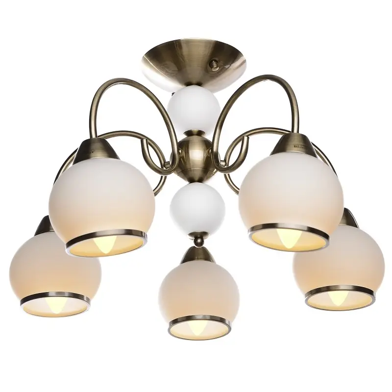Сделать будний день праздником, а обычную комнату превратить в торжественное помещение вам поможет великолепная люстра LK-264C/5 E27+LED. Материалами для ее изготовления послужили металл и стекло, которые в свою очередь обеспечивают люстре прочность и долговечность. Выполнена она в классическом стиле, сохраняет в себе все секреты прошлых времен. Что касается самого дизайна люстры, то он не содержит помпезных и вычурных элементов декора. К металлическому каркасу цвета старого золота прикреплены пять стеклянных матовых плафонов белого цвета, декорированных золотистой каймой. Окраска каркаса придает люстре еще большей старины. Дополнительно каркас декорирован двумя стеклянными матовыми шариками, которые оборудованы светодиодной подсветкой RGB (Red, Green, Blue - красный, зеленый, синий). Шарики меняют цвет свечения, сначала светятся оттенками красного, затем зеленого, синего и фиолетового цвета. Подсветка загорается одновременно с включением люстры. Но есть возможность подключить осветительный прибор так, что подсветку можно будет включать отдельно, не включая при этом главный источник света - пять лампочек с цоколем Е14. Для этого стоит просто установить двухклавишный выключатель. Для создания романтической обстановки в доме, в которой можно было бы расслабиться и забыть обо всех проблемах, эта люстра как раз то, что нужно. А если повесить ее в спальне, то она может послужить и в качестве ночника.
