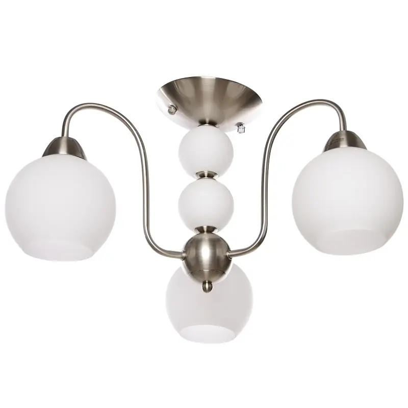 Хотите приобрести изысканный осветительный прибор? Как вам новинка от ТМ Brille - люстра в классическом стиле LK-265C/3 E27+LED, да еще и со светодиодной подсветкой?! Уверяем вас, соседи просто позавидуют, когда увидят такую королеву осветительных приборов у вас в гостиной! Для изготовления люстры мастера традиционно сочетали два материала: стекло и металл, которые в свою очередь обеспечивают люстре прочность и долговечность. Что касается самого дизайна люстры, то он не содержит помпезных и причудливых украшений. К металлическому каркасу цвета старого золота прикреплены три стеклянных матовых плафона белого цвета. Покрытие цвета старого золота на каркасе придает люстре еще большей старины и романтики. Кроме плафонов к каркасу прикреплены два небольших стеклянных матовых шарика белого цвета. Именно они оснащены светодиодной подсветкой RGB (Red, Green, Blue - красный, зеленый, синий). Шарики меняют цвет свечения, сначала светятся оттенками красного, затем зеленого, синего и фиолетового цвета. Подсветка загорается одновременно с включением люстры. Но есть также возможность подключить осветительный прибор так, что подсветку можно будет включать отдельно, не включая при этом главный источник света - три лампочки с цоколем Е27 мощностью 60 Вт. Для этого стоит просто установить двухклавишный выключатель. Для создания романтической обстановки в доме, в которой можно было бы расслабиться и забыть обо всех проблемах, эта люстра как раз то, что нужно. А если повесить ее в спальне, то она может послужить и в качестве ночника.