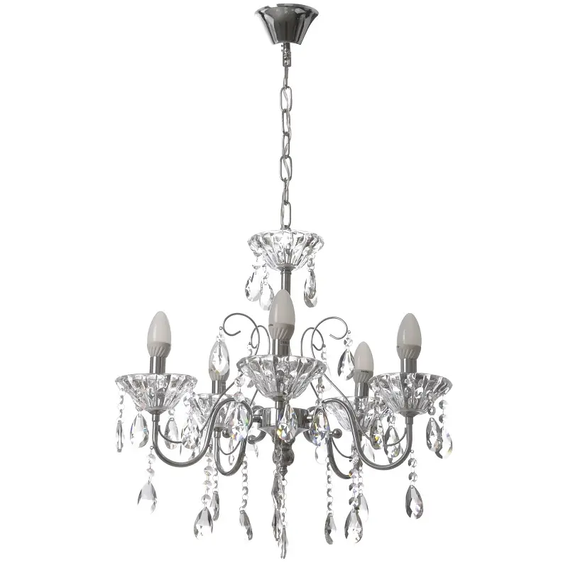 Люстра BCL-655S/5 E14 CH - изысканное украшение интерьера. Она представляет собой металлический каркас хромированного цвета со стеклянными декоративными подвесками. Высота люстры регулируется путем добавления и удаления звеньев на цепи, поэтому вы сможете повесить ее в помещении с высоким и низким потолком. Для работы люстры требуется 5 лампочек с цоколем E14 мощностью 60 Вт. К ней подходят светодиодные, энергосберегающие и лампочки накаливания. Лучше всего использовать светодиодные лампы, поскольку они экономят электроэнергию и служат дольше по сравнению с другими источниками света. Лампочки свечовидной формы добавят уюта. Украсьте хрустальной люстрой гостиную или добавьте блеска сдержанной кухне.
