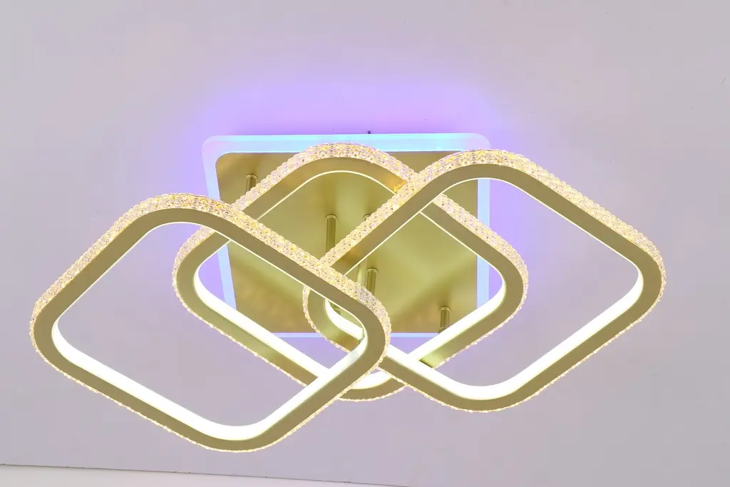 Длина 650мм, ширина 375мм мм и высота 160мм делают эту люстру идеальным выбором для кухни, спальни, гостиной или кабинета. Золотой каркас из металла выглядит стильно и элегантно. Три квадратных плафона из акрила в золотом цвете рассеивают свет равномерно, создавая атмосферу уюта и гармонии.