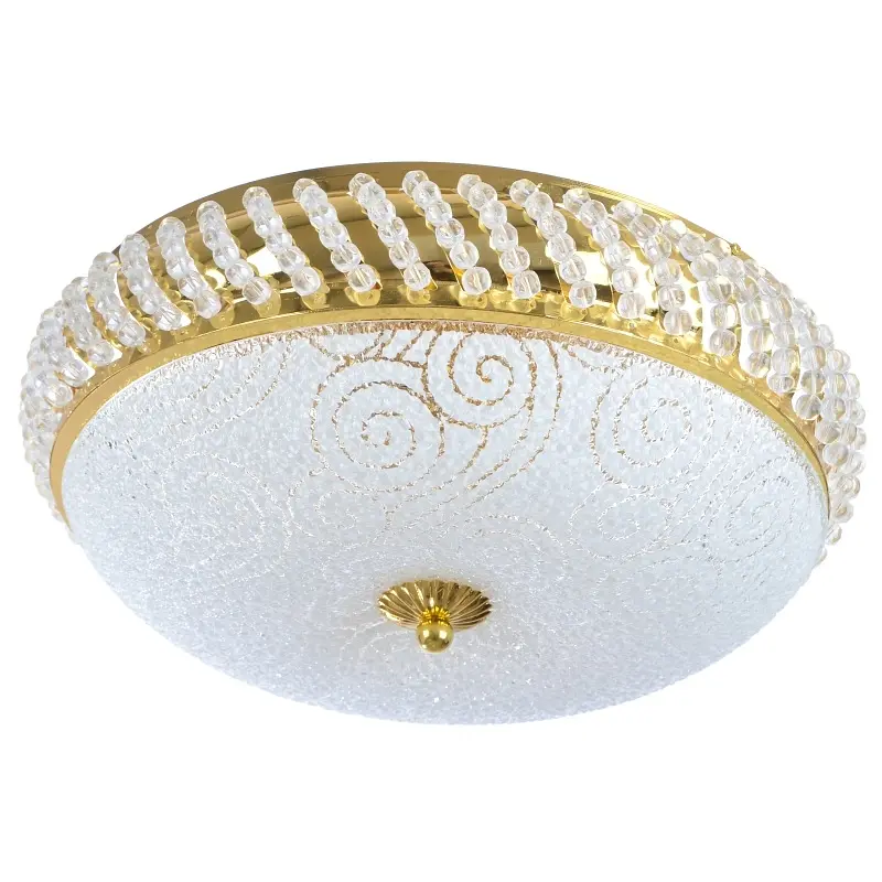 Модель BCL-407S/3 - шикарная потолочная люстра, выполненная в классическом дворцовом стиле. Она может занять достойное место в Вашей гостиной или спальне и создать неповторимую атмосферу роскоши. Каркас люстры BCL-407S/3, имеющий форму выпуклого диска, изготовлен из металла с покрытием золотого цвета. Ее стеклянный плафон с внутренним покрытием белого цвета и золотыми узорами имеет рифленую поверхность, а края каркаса декорированы искусственным хрусталем. Свет этой люстры, переливаясь и играя, заполнит помещение и очарует всех своей красотой. В люстре BCL-407S/3 рекомендуется использовать 3 обычные лампочки накаливания мощностью 60 Вт с цоколем Е14, или же аналогичные светодиодные лампы. Люстра имеет степень защиты от попадания посторонних предметов IP20. Лампы в комплект не входят.