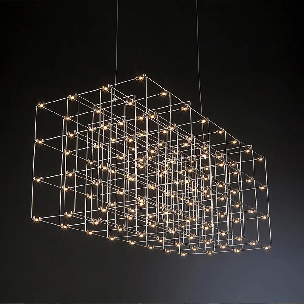 Новая серия геометрических люстр - это произведение искусства, сочетающее современный дизайн и функциональность. Их форма представляет собой вытянутый куб/параллелепипед с прямыми геометрическими линиями, выполненными из металлической проволоки цвета хром. Серия включает три люстра размером: 72х60х60 см, 100х72х60 см и 120х60х60 см. На углах параллелепипеда и на пересечении металлической проволоки размещаются лампочки (они идут в комплекте), которые обеспечивают нейтральный дневной свет, создавая приятную непринужденную атмосферу в помещении.Общая мощность светильника составляет 43 w Вт. Потолочное основание размером 25х15х4 см с монтажной планкой 15 см и 4-мя тросами обеспечивает надежное крепление. Такой метод крепления позволит легко установить люстру на требуемой высоте от 65 до 230 см. Эти люстры станут стильным акцентом в любом современном интерьере, придавая ему элегантность и уникальность. Тип цоколя: 60 Тип помещения: Люстры для гостиной (в зал) Форма_изделия: Куб Серия: Cube Цвет основы: Хром Размер потолочной основы: 25х15х4 см Максимальная высота: 230 см Минимальная высота: 65 см Материал основы: Металллл Размер монтажной планки: 15 см Тип крепления: Монтажна планка + 4 троси + 4 троси Мощность (Вт): 43 w w