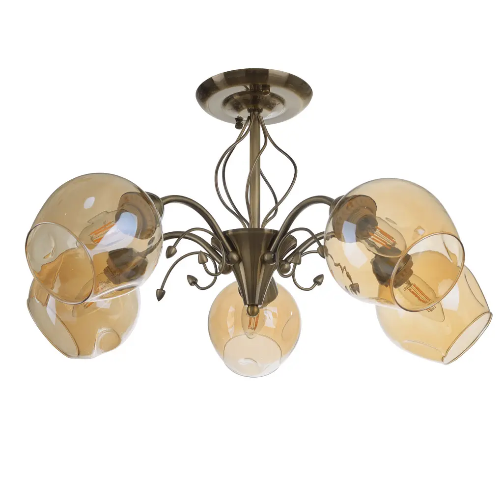 Люстра на пять плафонов LK-653S/3 E27 AB отлично справится с освещением прихожей, небольшой гостиной или холла. Устанавливается модель на монтажную планку. Компактные размеры (высота - всего 310 мм) позволяют использовать ее в помещениях с любой высотой потолков Для работы люстры нужны три лампы с цоколем Е27. Подходят светодиодные, энергосберегающие или обычные лампочки накаливания. Максимальная мощность лампы - 60 W. Металлический корпус обеспечивает изделию прочность. Светильник оборудован тремя стеклянными прозрачными плафонами, которые имеют округлую, немного вытянутую форму. Плафоны равномерно направляют световой поток вниз и в стороны. Лаконичный дизайн люстры - приятный золотистый цвет и элегантный металлический декор - позволяет применять ее в помещениях, оформленных в современном и классическом стиле. На всю продукцию действует гарантия.