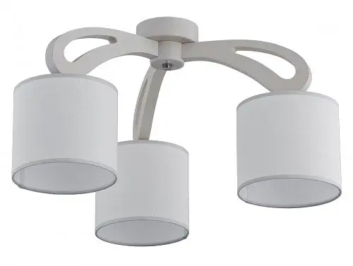 Люстра с абажурами серии Tekla производства компании ALFA (Польша); Материалы: полимер, дерево, текстиль; Цвет основания: крем; Цвет плафона: белый; Высота: 33 см; ширина: 55 см; лампы: 3х14х60 Вт. Люстра 21743 под заказ.
