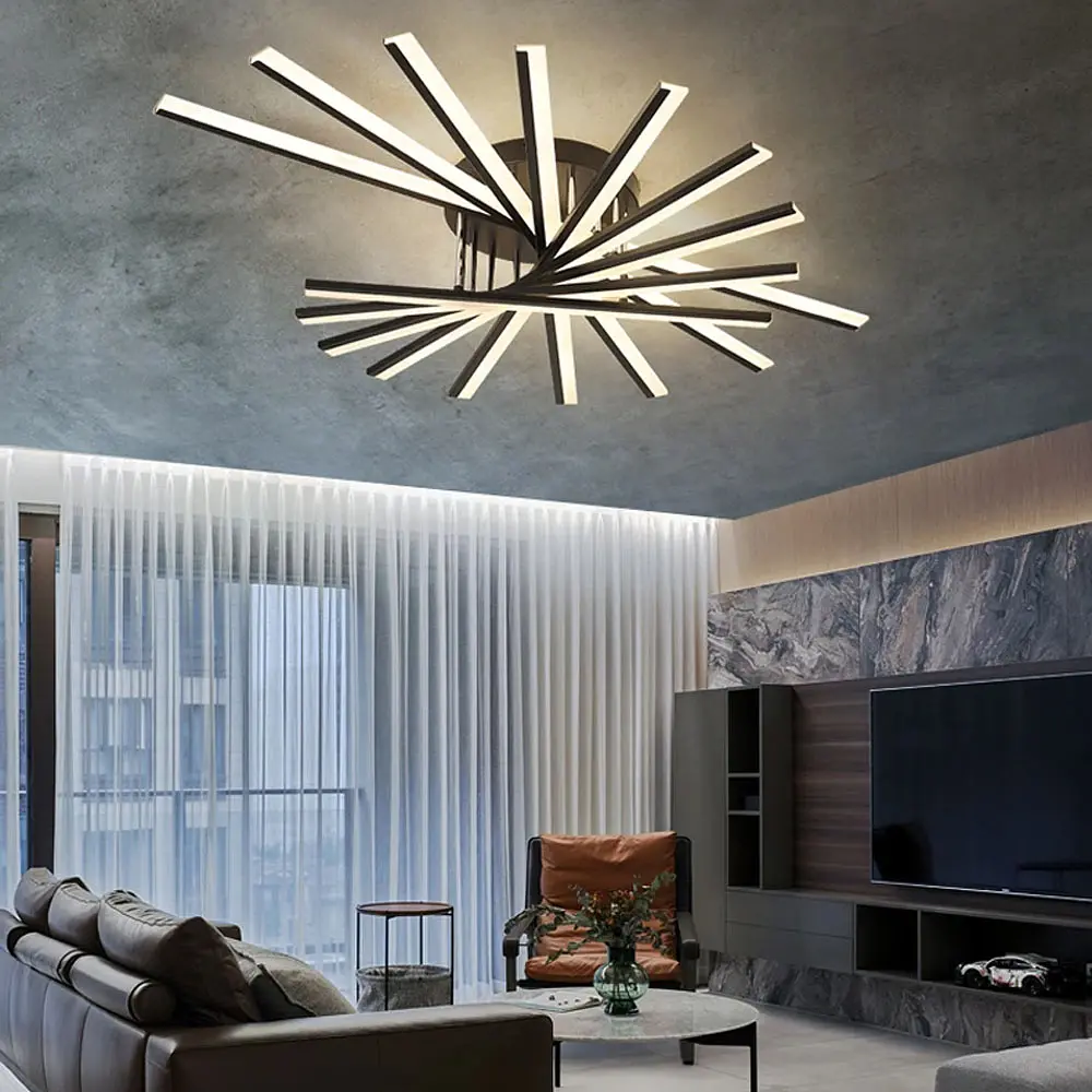 Люстра с геометрическим дизайном, сочетающим прямые световые линии, расположенные по кругу на круглой потолочной основе. Хромированные трубки добавляют элегантности и современного стиля, а черный металлический корпус с хромированной фурнитурой создает изысканный контраст. Диаметр люстры составляет 105 см, а высота - 17 см. Она оснащена тремя режимами освещения: теплый, холодный свет и ночник. Мощность светильника: 115 Вт (58 Вт теплое и холодное освещение, 11 Вт - ночник). Эта люстра является отличным выбором для современных интерьеров, отлично дополняет просторные гостиные, спальни или стильные офисные помещения. Она придает помещению изящества и обеспечивает различные варианты освещения для любой ситуации. Количество источников света: 17 Тип помещения: Люстры для гостиной (в зал) Форма_изделия: Круг Режим ночника: Есть Цвет основания: Черный Цвет фурнитуры: Хром Размер потолочной основы: 28х4,5 см Цветовая температура: 3000–4500–6000К Тип цоколя: LED-модуль Материал основы: Металл Размер монтажной планки: 28 см Тип крепления: Крестовина Мощность (Вт): 115 w