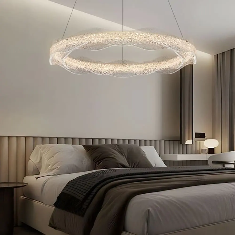Серия подвесных люстр из прозрачного рельефного волнистого акрила - это изящное сочетание современного дизайна и вдохновения природными формами. Черный металлический корпус, который как будто скрыт прозрачной акриловой конструкцией, создает впечатление, что люстра изготовлена из ледяной скульптуры. Акриловая часть люстры имеет частично волнистую рельефную поверхность, что придает светильнику неповторимый шарм. Встроенные светодиоды в черном корпусе поддерживают три режима освещения: теплый, нейтральный и холодный. Излучаемый свет мягко рассеивается через прозрачную акриловую конструкцию, подчеркивая рельефность поверхности. Это создает уникальный эффект, где свет «танцует» на поверхности акрила, придавая интерьеру изысканности и современный вид. Модель представлена в двух формах: Круглый кольцевой корпус - в 2-х диаметрах: 60 см и 80 см Удлиненный прямой корпус - 120 см Высота каждой люстры регулируется, что позволяет адаптировать ее к различным типам помещений. Эти люстры прекрасно подходят для гостиных, столовых или современных коммерческих помещений, придавая им стиль и элегантность. Количество источников света: 9 Форма изделия: Круг Тип помещения: Люстры для гостиной (в зал) Серия: MJ373 Цвет основы: Черный Материал плафона: Акрил Диаметр кольца: 80 см Размер потолочной основы: 18х4 см Цветовая температура: 3000–4500–6000К Максимальная высота: 160 см Минимальная высота: 45 см Материал основы: Металл Цвет хрусталя: Прозрачный Размер монтажной планки: 15,5 см Тип крепления: Крестовина Мощность (Вт): 24