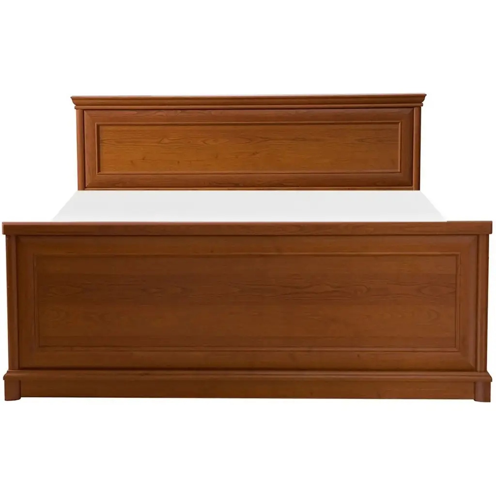 Эта двуспальная кровать выполнена в классическом стиле. Ее корпус и фасад сделаны из высококачественных материалов, таких как ЛДСП, ДСП и МДФ. Стоит отметить, что основа под матрас покупается отдельно, и в комплекте ее нет. Ниша для белья отсутствует, что позволяет сохранить строгие и четкие линии дизайна.