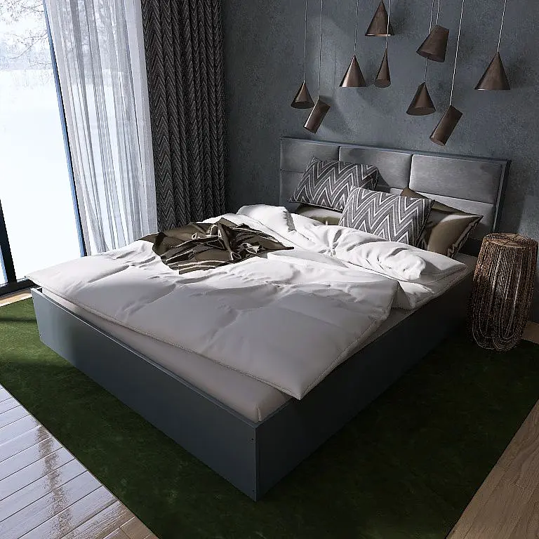 Ламельный каркас кровати обеспечивает хорошую поддержку для матраса и комфортный сон. Вентилируемая конструкция ламелей способствует циркуляции воздуха, что важно для сохранения свежести и сухости матраса.
