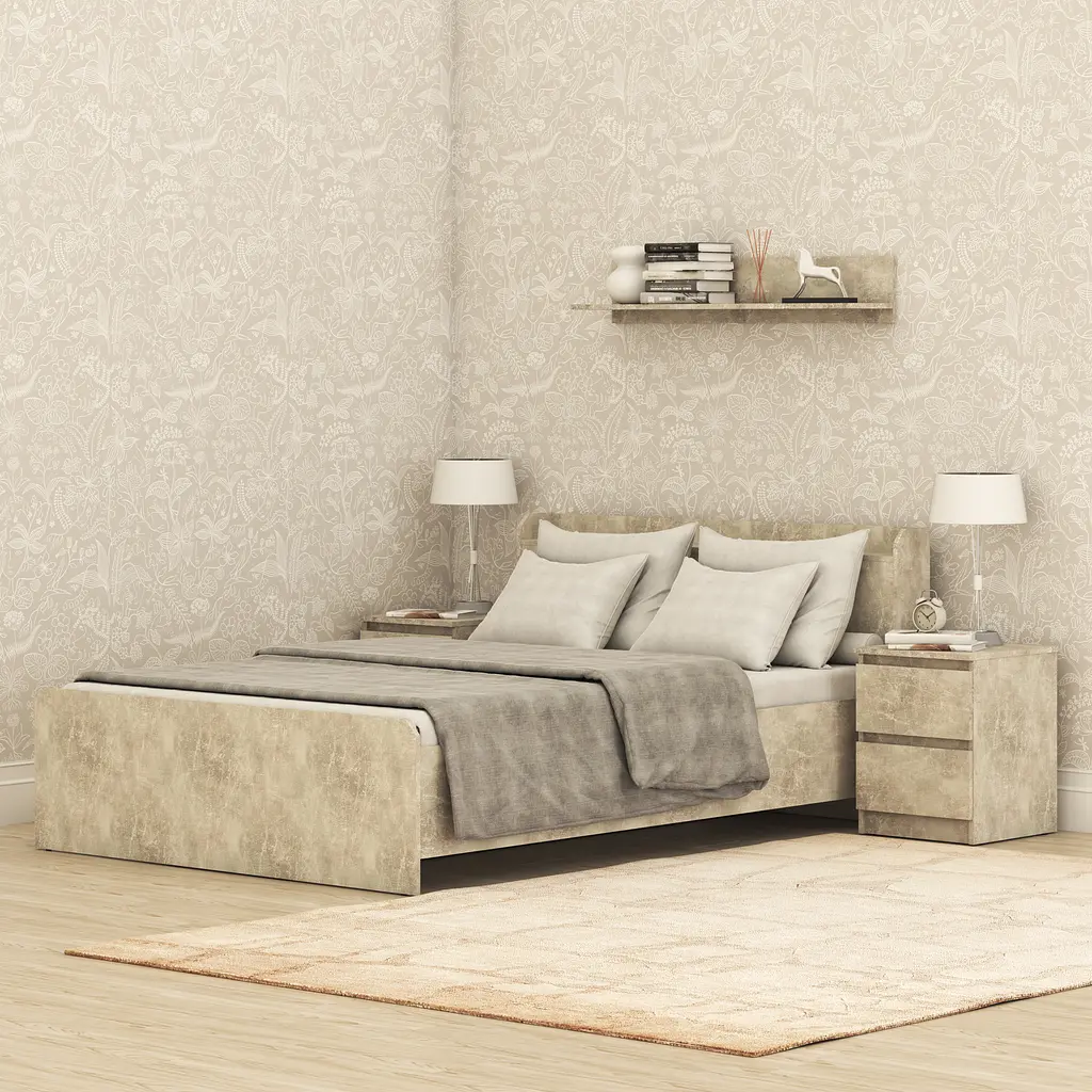 Двуспальная кровать MebelStar "Нео" - удобное пространство для двоих Двуспальная кровать MebelStar "Нео" – это современное решение для обустройства комфортного места для отдыха. Его минималистичный дизайн гармонично впишется в интерьер любой спальни, создавая уют и практичность. Особенности конструкции: Основа кровати состоит из прочных деревянных перекладин, которые обеспечивают надежную поддержку матраса; Компактная конструкция без ножек придает устойчивость и современный вид; Благодаря оптимальным размерам идеально подходит для двух человек; Кровать без выдвижных ящиков, что позволяет расположить ее даже в небольших комнатах. Размеры: Размер спального места (см): 140x200 Ширина (см): 148,2 Длина (см): 218,4 Высота спинки (см): 86 Эта кровать 140 на 200 см предлагает достаточно места для комфортного сна, а ее универсальная конструкция позволяет использовать кровать с различными видами матрасов. Обратите внимание! Оттенок изделия на фотографии может отличаться от реального из-за особенностей передачи цветов монитором, настроек фотооборудования и других технических факторов.