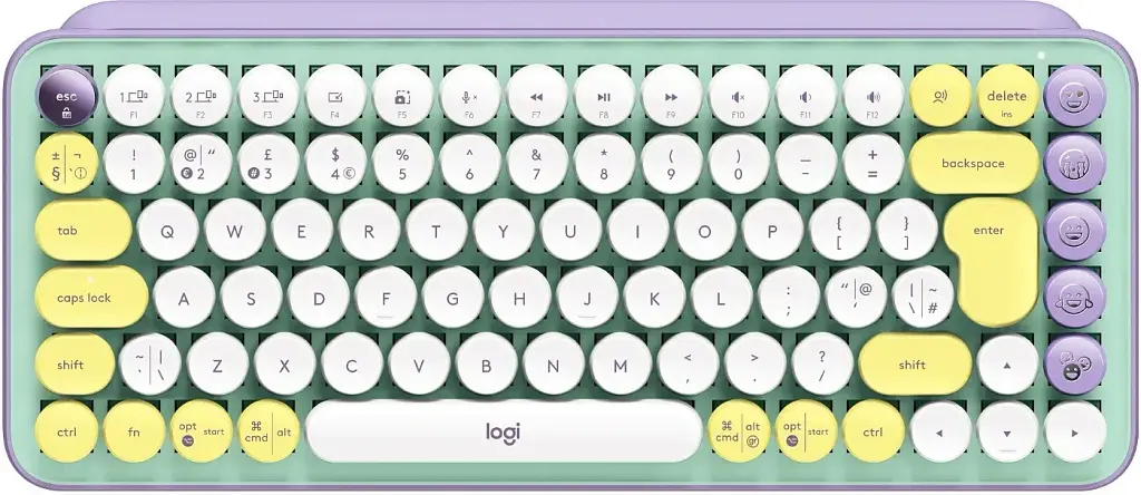 Пусть ваша индивидуальность выделяется на рабочем столе с помощью клавиатурыLogitech POP KeysDaydream , которая сочетает уникальные оттенки мяты, сирени и белого с желтым акцентом.