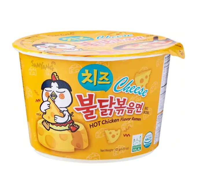 Знаменитая корейская острая лапша с насыщенным вкусом курицы и расплавленного сыра. Этот вариант легендарного «огненного» рамена от Samyang сочетает фирменную жгучесть оригинального Buldak с мягким сливочно-сырным оттенком, создавая идеально сбалансированный вкус - острый, кремовый и невероятно аппетитный.