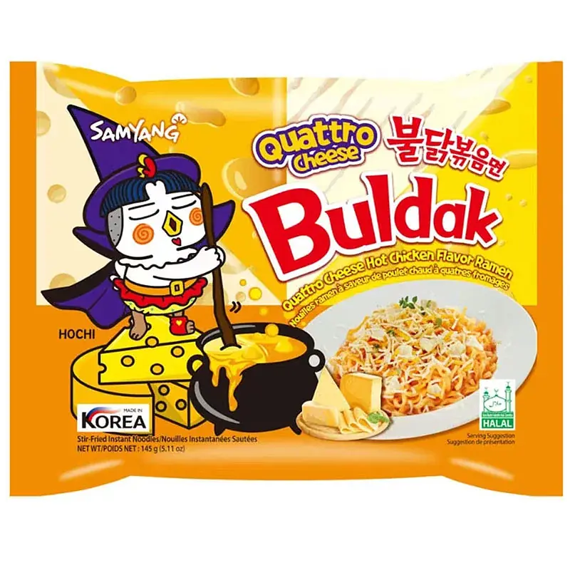 До конца акции 159 днейЛапша рамен Samyang Buldak Quattro Cheese Булдак со вкусом четыре сыра 140 г