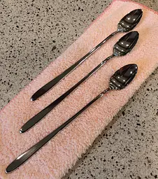 Якісні ложки для коктейлю, капучіно... при використанні у великих стаканах. Зручні, з нержавіючої сталі, високий ступень полірування, гарна форма (нічого зайвого), приємна вага - не якась бляшанка що гнеться при натисканні. З першого погляду все дуже і дуже пристойно. Побачимо що буде під час використання але виходячи з того що виробник-відомий європейський бренд вважаю що це найкращий вибір за таку ціну. Тому мої рекомендації до придбання!
