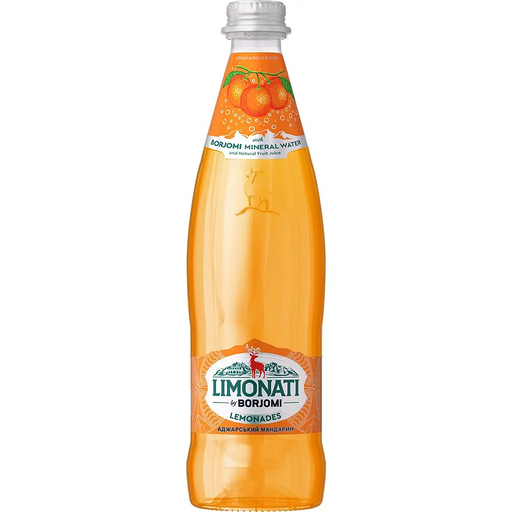 Изысканный вкус традиционного грузинского лимонада с мандариновым соком из аджарии и природной минеральной водой "Боржоми". Вода питьевая природная из источников боржомского ущелья. Не содержит искусственных красителей и консервантов.