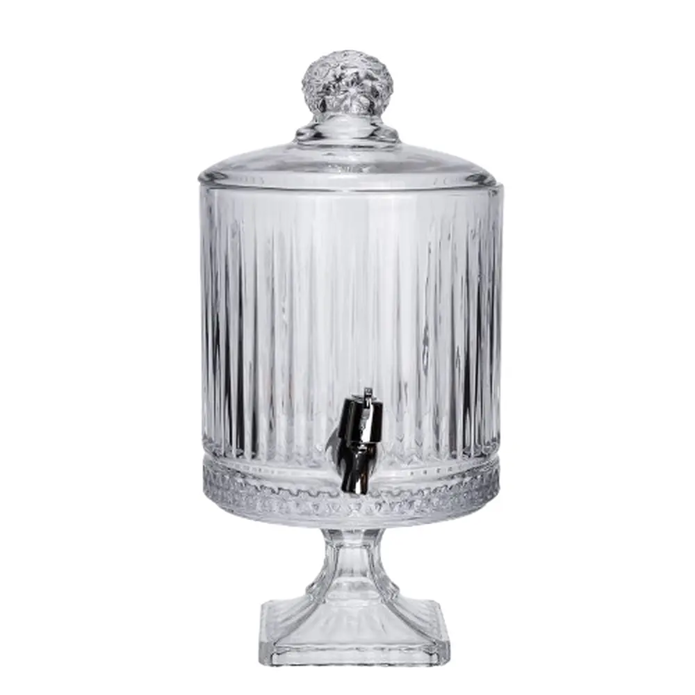 Элегантная лимонадница из крепкого стекла идеально подойдет для подачи прохладительных напитков на праздничном столе, фуршете или повседневной обстановке. Прозрачные стенки с вертикальным рифлением придают изделию изысканный вид, а кран обеспечивает удобную наливку напитков.