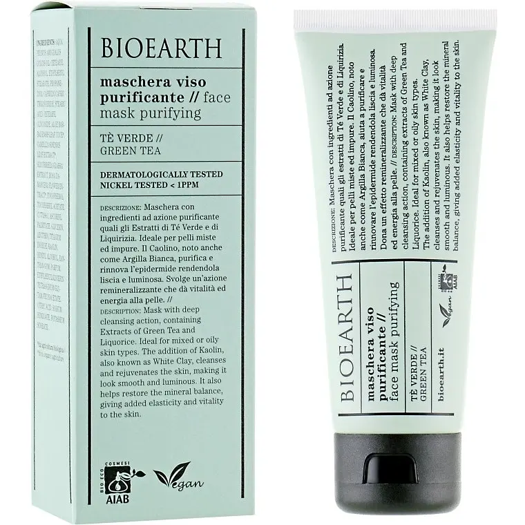 Очищающая маска Clarifying Green Tea Face Mask содержит натуральные ингредиенты растительного происхождения: экстракты солодки и зеленого чая, а также белую глину. В комплексе они обеспечивают глубокую очистку пор, избавляют от сальных пробок, тонизируют и освежают. Кроме того, Bioearth Clarifying Green Tea Face Mask не пересушивает кожу и не нарушает ее естественную липидную защиту.