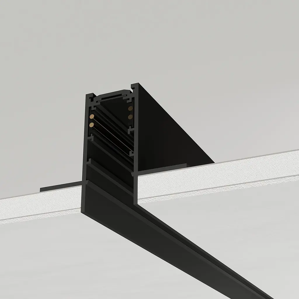 Магнитный встроенный трек идеально подходит для монтажа в потолке или стенах из гипсокартона, не требуя дополнительного слоя шпаклевки, что упрощает установку. Линейные и угловые соединители позволяют создавать трековую систему любой конфигурации, включая плавные переходы между потолком и стенами. Магнитная система освещения подходит для жилых, офисных, выставочных и коммерческих помещений, предоставляя возможность настройки под любой интерьер. Под потолочный гипсокартон, толщина 9,5 мм. Тип: Встраиваемые Цвет: black Type: Recessed Стиль: Современный Материал плафона: Алюминий Класс защиты (IP): IP20 Гарантия: 36 месяцев Гарантия: 5 лет Высота (мм): 60 Длина (мм): 1504 Ширина, мм: 74