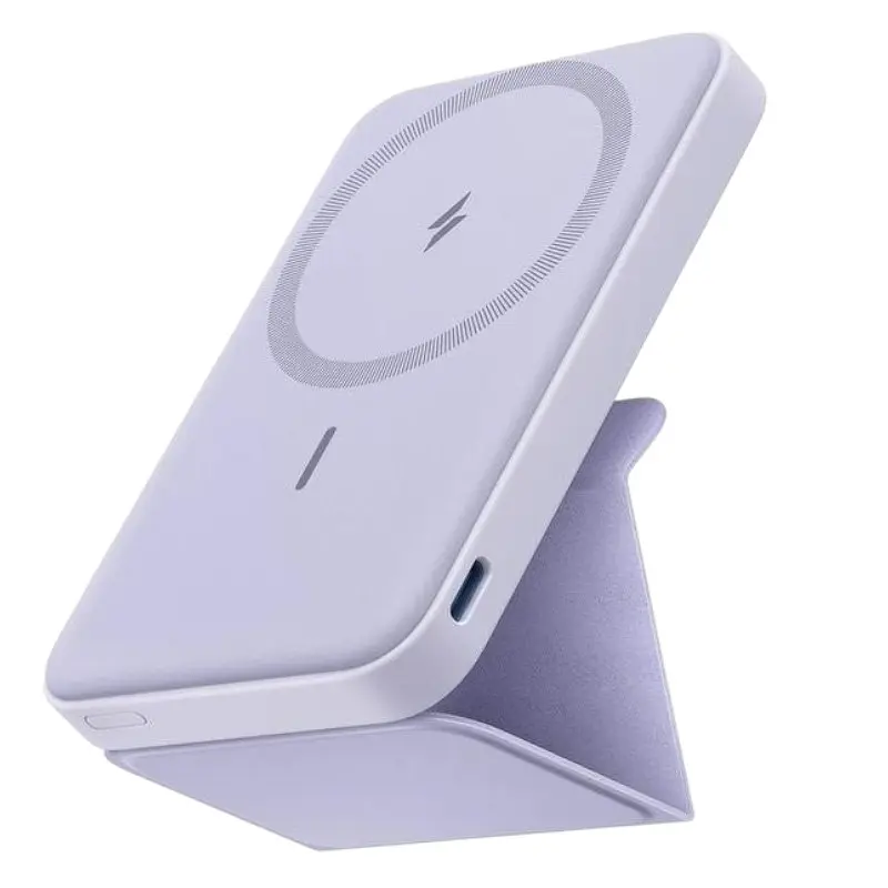 Магнитный павербанк Anker 622 MagGo 5000 mAh 12 W с беспроводной зарядкой и фиолетовой подставкой - это компактный и стильный павербанк от бренда Anker, специально разработанный для удобной беспроводной зарядки смартфонов с поддержкой MagSafe и других устройств, со встроенной подставкой для комфорта.