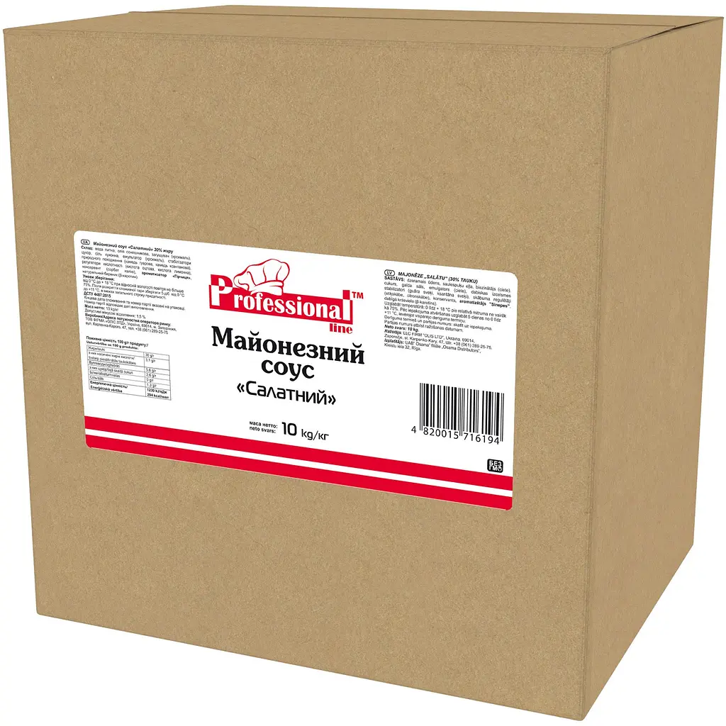 Майонезный соус Professional Line Салатный 30% - это легкий соус, созданный специально для салатов и легких закусок. Благодаря содержанию жира 30%, этот соус имеет приятную кремовую текстуру и сбалансированный вкус, идеально подходит для различных салатов, овощных блюд и заправок.