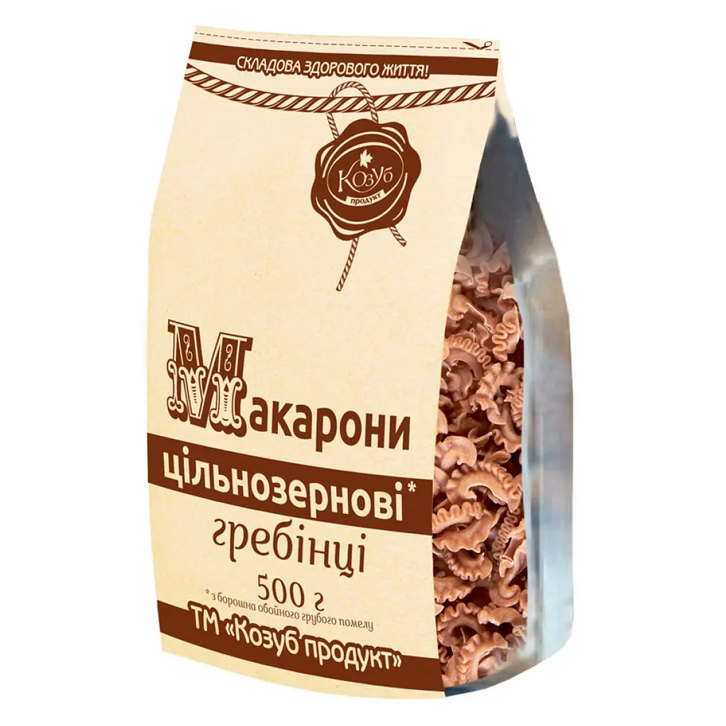 Макаронные изделия Козуб продукт Гребешки изготовлены из цельнозерновой муки, которая сохранила в себе все составляющие зерна.