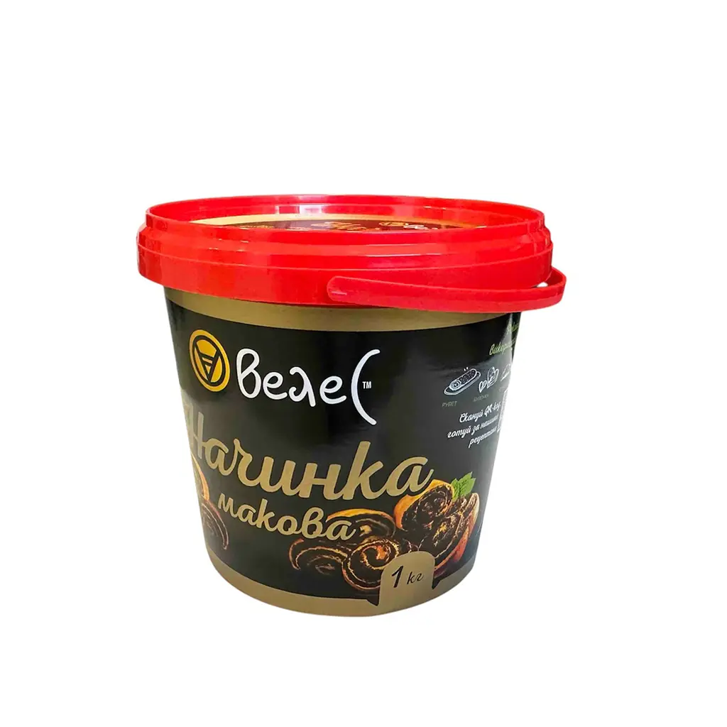 Маковая начинка Велес – это готовая к использованию начинка от бренда Велес, предназначенная для выпечки, доступная для покупки в Украине. Изготовлен из молотых маковых зерен, сахара и натуральных ингредиентов, он имеет приятный сладкий вкус и текстуру, идеальную для рулетов, пирожков и других десертов. Вес 1000 г позволяет готовить большое количество выпечки.
