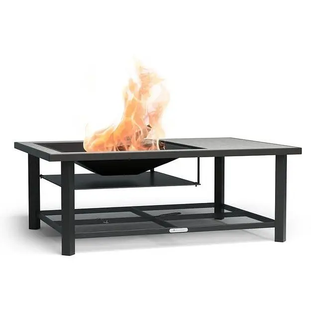Столешница XXL размером 122 x 87 см, изготовленная из терраццо, придает саду или террасе обаяния и может обеспечить много пространства. В то же время, прочная стальная рама может обеспечить надежное хранение под столом. Прикрепляемый искрозащитный кожух и теплозащитный экран под очагом всегда могут обеспечить необходимую безопасность, когда вы собираетесь у потрескивающего костра.