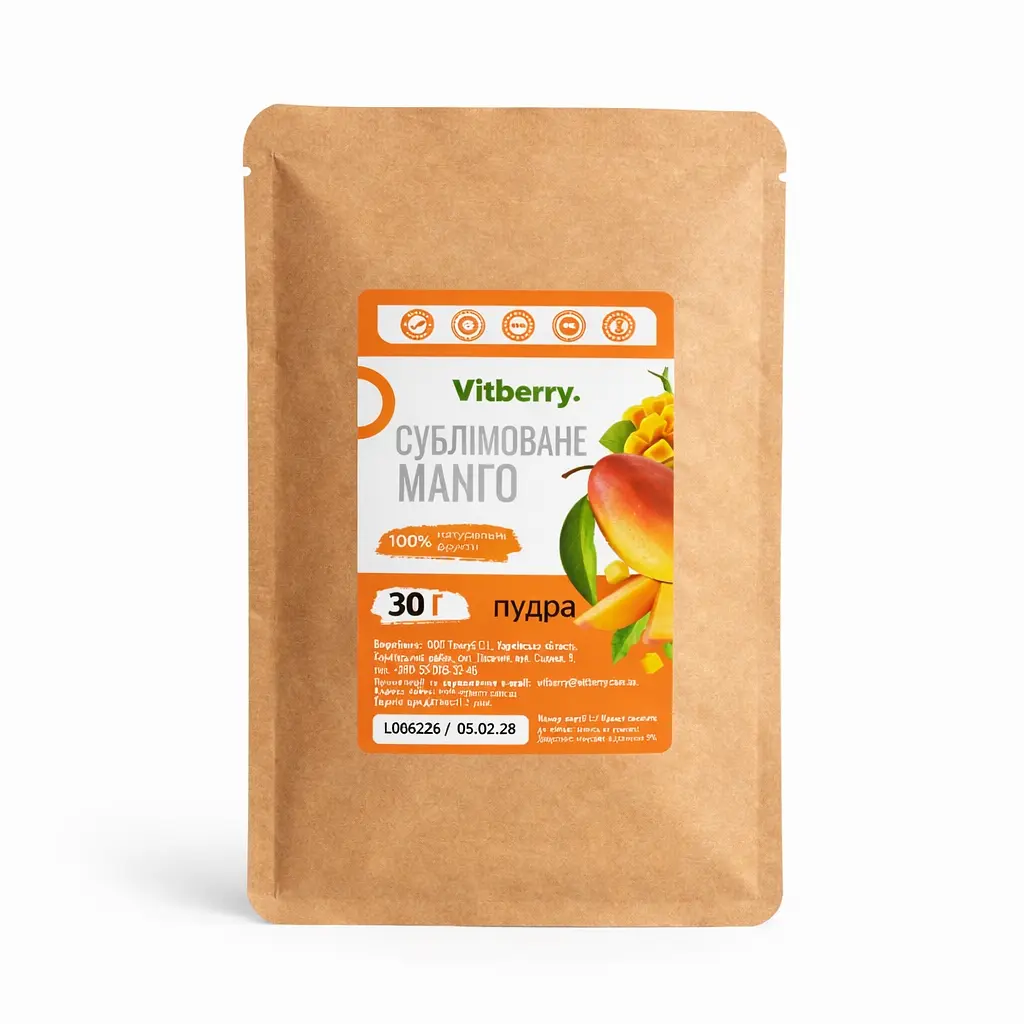 Сублимированный порошок манго это 100% натуральный манго, измельченный до состояния пудры после удаления влаги в вакууме. Данная технология позволяет полностью сохранить яркий солнечный цвет, насыщенный сладкий вкус и уникальный витаминный комплекс свежего манго. Благодаря отсутствию воды, 100 граммов порошка по питательности эквивалентны почти одному килограмму спелых отборных плодов.