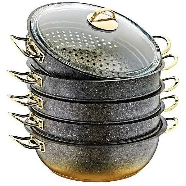 Эта мантоварка имеет 4 яруса и диаметр 30 см. Она идеально подходит для приготовления мантов, пельменей, паровых булочек и других блюд.