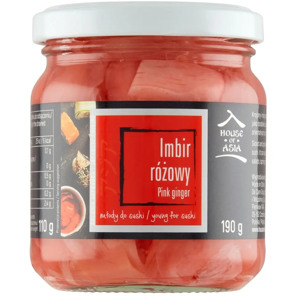 Маринованный розовый имбирь House of Asia – тонко нарезанный розовый имбирь в легком маринаде с приятным сладко-кислым вкусом является классическим дополнением к блюдам азиатской кухни, особенно суши и сашими. Он освежает вкусовые рецепторы между разными блюдами, подчеркивает вкус рыбы и риса, а также может использоваться в качестве гарнира или ингредиента салатов и боулов.