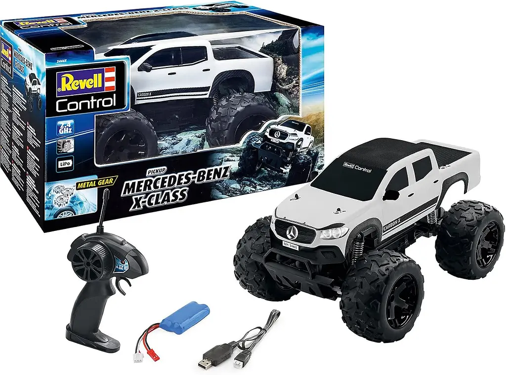 Откройте для себя мир внедорожных приключений с радиоуправляемым всюдохом Mercedes-Benz Big X. Эта модель от Revell Control сочетает агрессивный дизайн настоящего пикапа и высокую проходимость для офф-роуд трасс.