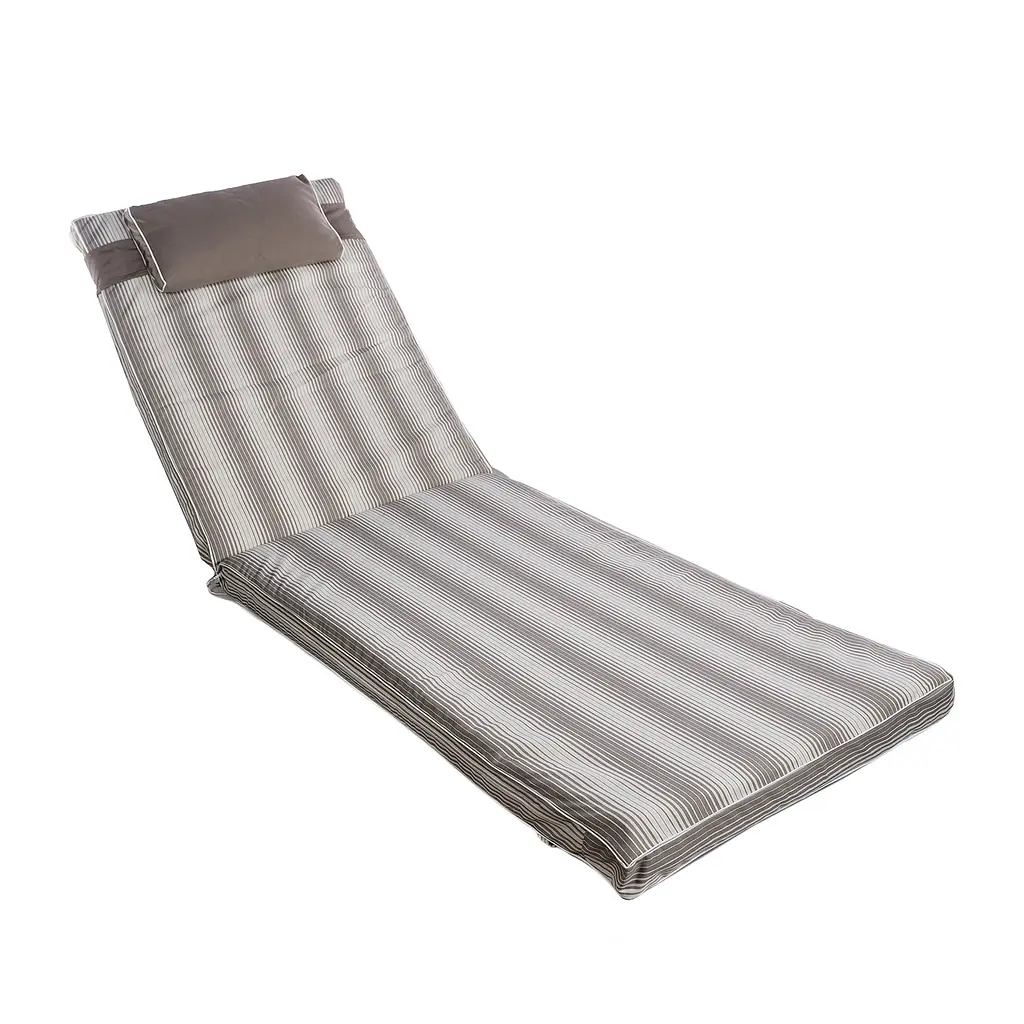 Матрас фиксируется к лежаку: на спинке – липучками, в средней и нижней части – завязками.