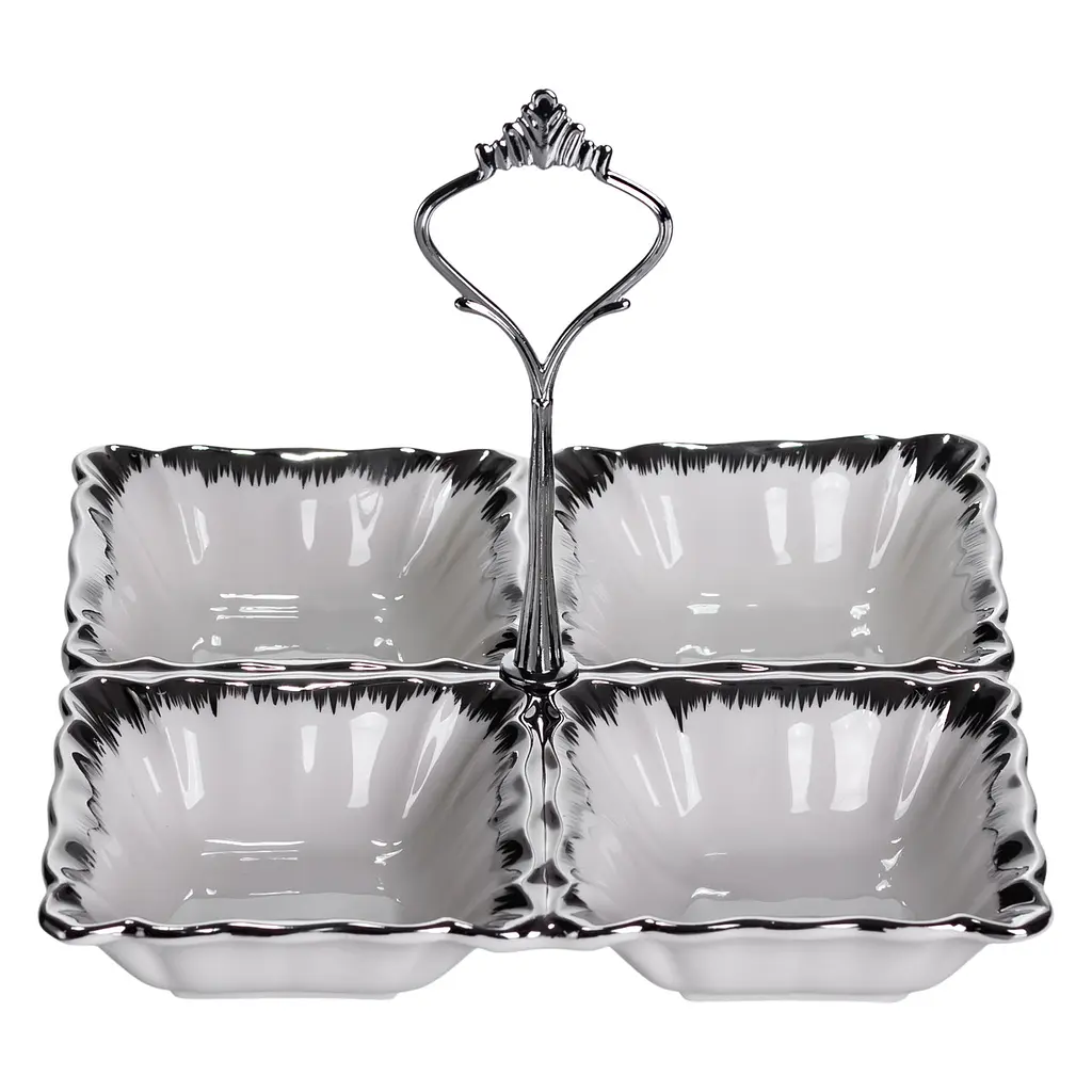 Элегантная фарфоровая менажница с ручкой - это стильный сервировочный элемент, который сочетает изысканность и функциональность. Она идеально подойдет для хорошей подачи закусок, соусов, орехов, сладостей или фруктов.