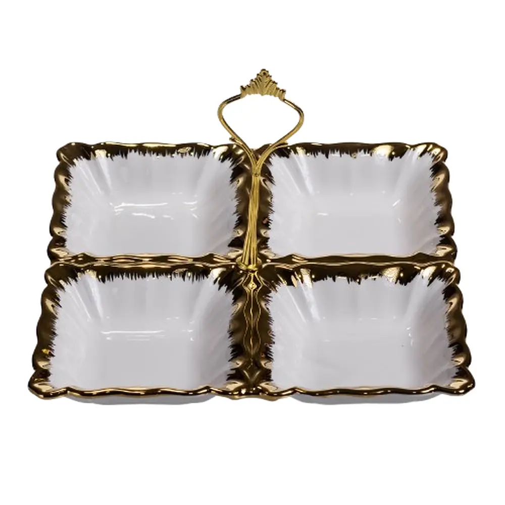 Элегантная фарфоровая менажница с ручкой - это стильный сервировочный элемент, который сочетает изысканность и функциональность. Она идеально подойдет для хорошей подачи закусок, соусов, орехов, сладостей или фруктов.
