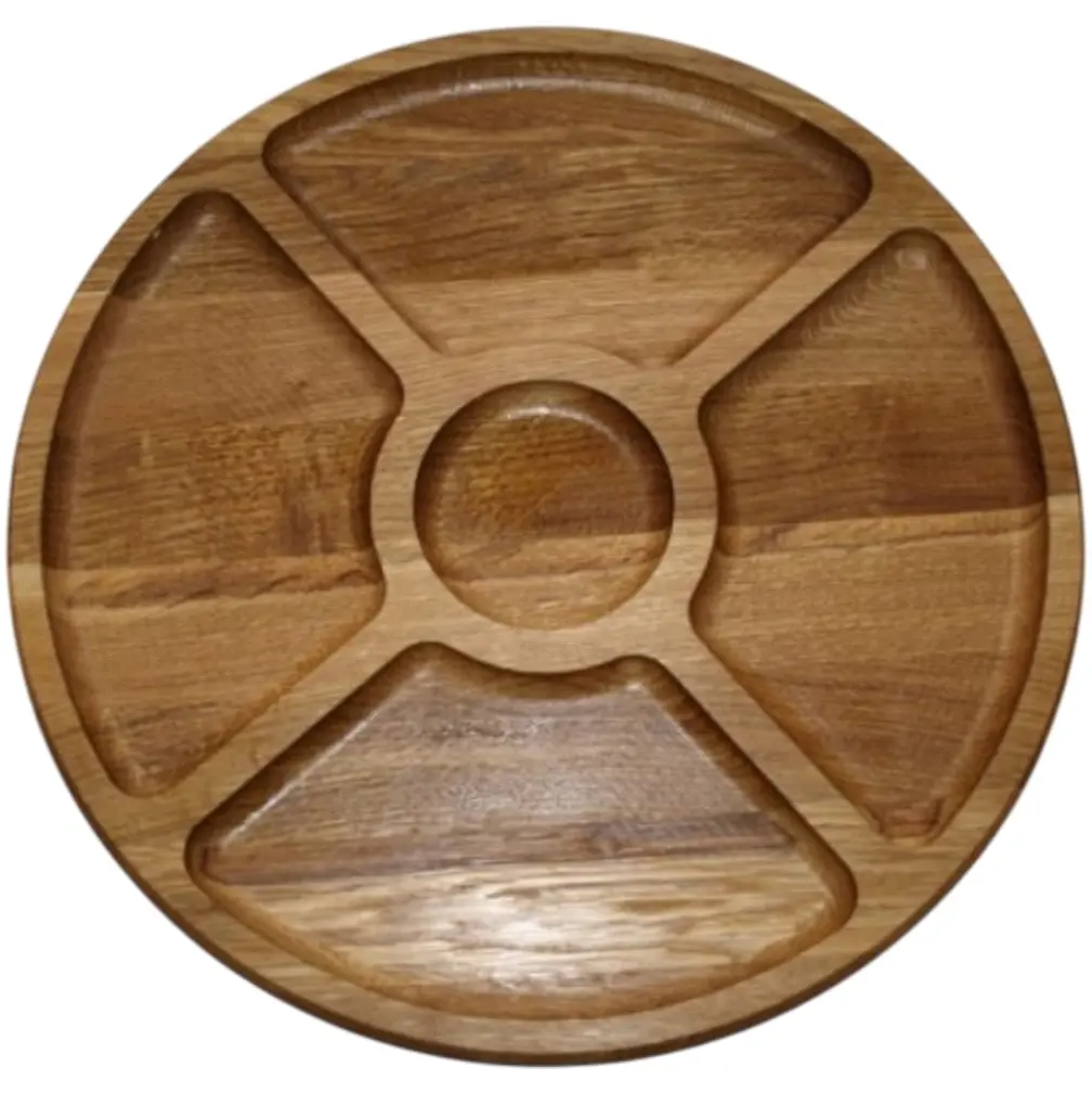 Менажница Жива диаметром 25 см с тремя секциями, выполненная из натурального дерева - ясеня, станет не только универсальной и любимой посудой для подачи блюд, но и украшением Вашего стола.