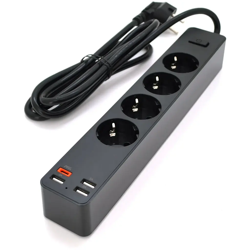 Описание: Сетевой фильтр KSC-717 из серии Zhengya с 4 розетками и 4 USB выходами обеспечивает защиту от перегрузок и удобство для подключения различных устройств. Его мощность составляет 4000W, а длина кабеля – 1.8 метра. Цвет черный. Характеристики: - Модель: KSC-717 Zhengya series - Количество розеток: 4 - USB выходы: 4 - Максимальная мощность: 4000W - Длина кабеля: 1.8 м - Цвет черный