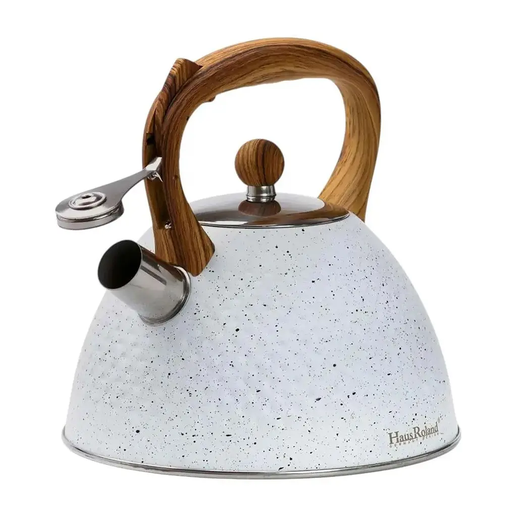 До конца акции 3 дняМеталлический чайник с нержавеющей стали Haus Roland со свистком 3л Белый - Тяжелое дно обеспечивает равномерное распределение тепла