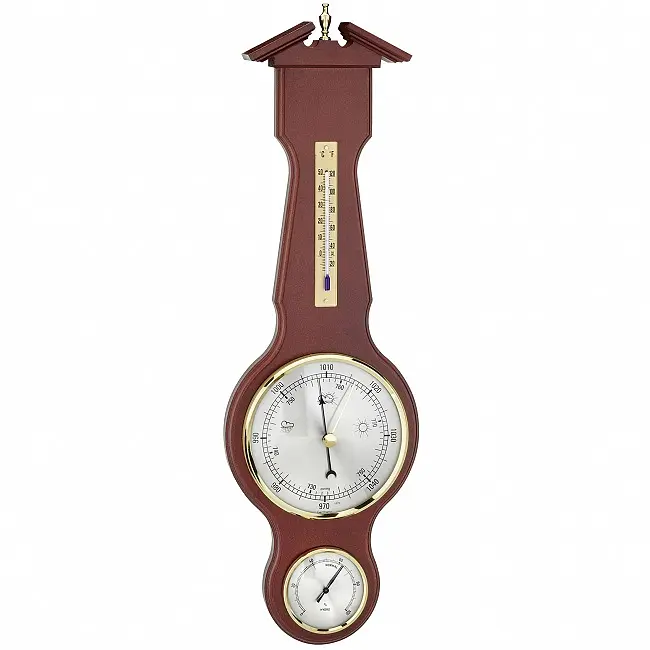 Производитель: TFA Dostmann GmbH & Co.KG, ГерманияОсобенности:Произведено в ГерманииМетеостанция из дерева в классическом стиле SheratonС барометром, термометром и гигрометромИзмеряет давление воздуха, температуру и влажность в помещенииТочный барометр с механизмом Domatic (точность +/- 3 ГПа) для местного прогноза погодыНе требует использования батареекГарантия 3 годаВы любите традиционный, неподвластный времени и эксклюзивный дизайн? Тогда эта деревянная метеостанция в классическом стиле Sheraton хорошо впишется в ваш интерьер. Она состоит из барометра, термометра и гигрометра. Барометр измеряет атмосферное давление и позволяет делать местный прогноз погоды. С увеличением давления воздуха погода улучшается, а с уменьшением давления воздуха вам следует ожидать ухудшения погоды. Контролируя температуру и влажность в помещении, вы можете создать комфортный и здоровый климат в помещении и сэкономить на отоплении. Метеостанция полностью изготовлена в Германии. Основным элементом TFA является собственное производство механических метеорологических приборов. TFA создает продукцию, соответствующую этикетке «Сделано в Германии», с использованием самых современных технологий производства и традиционного ремесленного мастерства. Продукция от TFA убеждает своей функциональностью и дизайном.