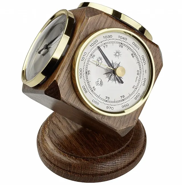 Производитель: TFA Dostmann GmbH & Co.KG, Германия. Особенности: Произведено в Германии. Настольная метеостанция из массива дуба. С барометром, термометром и гигрометром. Измеряет давление воздуха, температуру и влажность в помещении. Барометр для местного прогноза погоды. Не требует использования батареек. Гарантия 3 года. Настольная метеостанция состоит из барометра, термометра и гигрометра. Барометр измеряет атмосферное давление и позволяет делать местный прогноз погоды. С увеличением давления воздуха погода улучшается, а с уменьшением давления воздуха следует ожидать ухудшения погоды. Контролируя температуру и влажность в помещении, вы можете создать комфортный и здоровый климат в помещении и сэкономить на отоплении. Метеостанция полностью изготовлена в Германии.Основным элементом TFA является собственное производство механических метеорологических приборов. TFA создает продукцию, соответствующую этикетке «Сделано в Германии», с использованием самых современных технологий производства и традиционного ремесленного мастерства. Продукция от TFA убеждает своей функциональностью и дизайном.