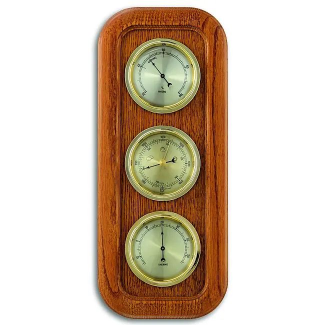 Производитель: TFA Dostmann GmbH & Co.KG, ГерманияОсобенности:Произведено в ГерманииМетеостанция с рамкой из массива дуба в классическом дизайнеС барометром, термометром и гигрометромИзмеряет давление воздуха, температуру и влажность в помещенииТочный барометр с механизмом Domatic (точность +/- 3 гПа) для местного прогноза погодыНе требует использования батареекГарантия 3 годаЭта метеостанция из массива дуба — идеальное воплощение традиционного и вневременного эксклюзивного стиля интерьера. Метеостанция состоит из барометра, термометра и гигрометра. Барометр измеряет атмосферное давление и позволяет делать местный прогноз погоды. С увеличением давления воздуха погода улучшается, а с уменьшением давления воздуха следует ожидать ухудшения погоды. Контролируя температуру и влажность в помещении, вы можете создать комфортный и здоровый климат в помещении и сэкономить на отоплении. Метеостанция полностью изготовлена в Германии. Основным элементом TFA является собственное производство механических метеорологических приборов. TFA создает продукцию, соответствующую этикетке «Сделано в Германии», с использованием самых современных технологий производства и традиционного ремесленного мастерства. Продукция от TFA убеждает своей функциональностью и дизайном.