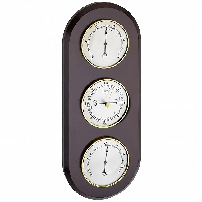 Производитель: TFA Dostmann GmbH & Co.KG, Германия Особенности: Произведено в Германии. Метеостанция из дерева в классическом дизайне. С барометром, термометром и гигрометром. Измеряет давление воздуха, температуру и влажность в помещении. Точный барометр с механизмом Domatic (точность +/- 3 гПа) для местного прогноза погоды. Не требует использования батареек. Гарантия 3 года. Метеостанция из массива дерева состоит из барометра, термометра и гигрометра. Барометр измеряет атмосферное давление и позволяет делать местный прогноз погоды. С увеличением давления воздуха погода улучшается, а с уменьшением давления воздуха следует ожидать ухудшения погоды. Контролируя температуру и влажность в помещении, вы можете создать комфортный и здоровый климат в помещении и сэкономить на отоплении. Метеостанция полностью изготовлена в Германии.Основным элементом TFA является собственное производство механических метеорологических приборов. TFA создает продукцию, соответствующую этикетке «Сделано в Германии», с использованием самых современных технологий производства и традиционного ремесленного мастерства. Продукция от TFA убеждает своей функциональностью и дизайном.