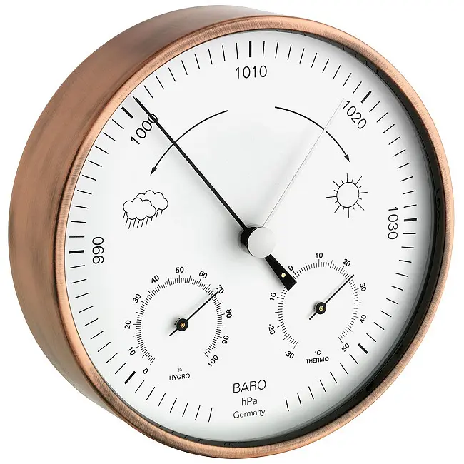 Производитель: TFA Dostmann GmbH & Co.KG, ГерманияОсобенности:Произведено в ГерманииКонструкция метеостанции из металла и стекла, неподвластная времениС барометром, термометром и гигрометромИзмеряет давление воздуха, температуру и влажностьТочный барометр с механизмом DOMATIC (точность +/- 3 hPa) для прогноза погодыНе требует использования батареекУстойчив к погодным условиямГарантия 3 годаИзящный, неподвластный времени элегантный дизайн метеостанции в металлическом корпусе со стеклянной крышкой делает эту метеостанцию современной классикой. Этот элегантный предмет дополняет любой интерьер и может быть использован как в гостиной, так и на балконе или террасе. Механизмы состоят из барометра, термометра и гигрометра. Барометр измеряет атмосферное давление и позволяет вам составлять местный прогноз погоды. С увеличением давления воздуха погода улучшается, а с уменьшением давления воздуха следует ожидать ухудшения погоды. Барометр сначала настраивается в соответствии с атмосферным давлением в Вашей местности. Информацию об этом можно получить в местной метеослужбе, в Интернете, по показаниям эталонных приборов, установленных в общественных зданиях и т.п. Термометр показывает температуру, а гигрометр — влажность. Метеоприбор полностью произведен в Германии.Основным элементом TFA является собственное производство механических метеоинструментов. TFA создает продукцию, соответствующую этикетке «Сделано в Германии», с использованием самых современных технологий производства и традиционного ремесленного мастерства. Продукция от TFA убеждает своей функциональностью и дизайном.