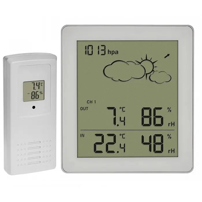 Можно ли сегодня оставить толстую зимнюю куртку в шкафу, стоит ли взять с собой зонтик на всякий случай? И не пора ли снова проветрить гостиную или офис? С помощью беспроводной метеостанции CLEAR вы можете следить за текущими погодными условиями, а также за микроклиматом в вашем жилом или рабочем помещении. Это недорогое, компактное устройство предоставляет целый спектр информации. Внутренний датчик измеряет атмосферное давление и регистрирует его изменения, чтобы сделать выводы о предстоящих погодных условиях. Они отображаются в верхней части дисплея в виде четких символов со стрелками тренда. В то же время внешний датчик с радиусом действия до 100 метров передает данные о текущей температуре и влажности в вашем (палисадном) саду. Для контроля климата в помещении отображаются внутренние измерения в месте установки, которые можно регулировать с помощью отопления или вентиляции. В итоге: комфорт в гостиной, кабинете или спальне в значительной степени зависит от качества воздуха. С помощью CLEAR вы можете контролировать температуру и влажность, предотвращать образование плесени из-за чрезмерно влажного воздуха и даже экономить на отоплении. Опционально беспроводную метеостанцию можно расширить максимум двумя термогигродатчиками. Их можно приобрести отдельно. Таким образом, вы получаете текущие значения наружной температуры и влажности из разных мест или можете следить за климатом в других помещениях, например, в винном погребе или гараже. Благодаря своему изящному дизайну и компактному размеру с четким дисплеем, это устройство подходит для любой обстановки, независимо от того, хотите ли вы установить его на встроенной подставке или закрепить на стене с помощью петли для подвешивания. Базовая станция и радиопередатчик питаются от двух стандартных батареек типа ААА (не входят в комплект). ФУНКЦИИ Внешняя температура и влажность с помощью беспроводного датчика температуры и влажности (433 МГц), дальность действия до 100 м (открытое пространство) Температура и влажность в помещении Относительное атмосферное давление Прогноз погоды с символами и тенденцией атмосферного давления Настенное крепление или настольная подставка Опционально: Возможность расширения до 3 датчиков температуры и влажности (продаются отдельно), также для климат-контроля удаленных помещений, например, детской комнаты, винного погреба и т. д. ЗНАК КАЧЕСТВА TFA Продукция от TFA убеждает своей функциональностью и дизайном.