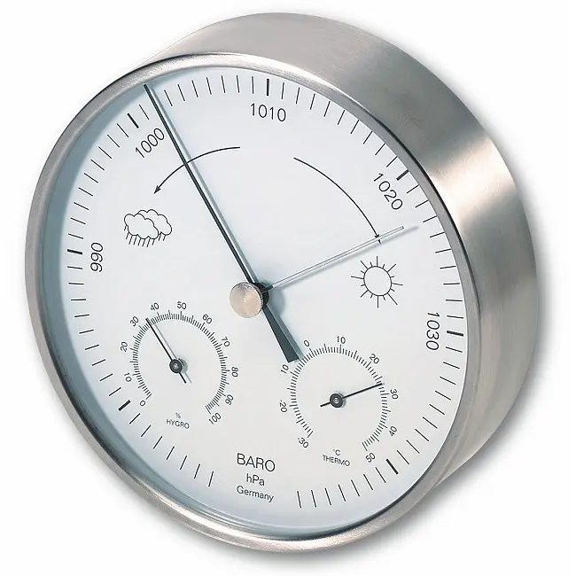 Производитель: TFA Dostmann GmbH & Co.KG, ГерманияОсобенности:Произведено в ГерманииКонструкция метеостанции из металла и стекла, неподвластная времениС барометром, термометром и гигрометромИзмеряет давление воздуха, температуру и влажностьТочный барометр с механизмом DOMATIC (точность +/- 3 hPa) для прогноза погодыНе требует использования батареекУстойчив к погодным условиямГарантия 3 годаИзящный, неподвластный времени элегантный дизайн метеостанции в металлическом корпусе со стеклянной крышкой делает эту метеостанцию современной классикой. Этот элегантный предмет дополняет любой интерьер и может быть использован как в гостиной, так и на балконе или террасе. Механизмы состоят из барометра, термометра и гигрометра. Барометр измеряет атмосферное давление и позволяет вам составлять местный прогноз погоды. С увеличением давления воздуха погода улучшается, а с уменьшением давления воздуха следует ожидать ухудшения погоды. Барометр сначала настраивается в соответствии с атмосферным давлением в Вашей местности. Информацию об этом можно получить в местной метеослужбе, в Интернете, по показаниям эталонных приборов, установленных в общественных зданиях и т.п. Термометр показывает температуру, а гигрометр — влажность. Метеоприбор полностью произведен в Германии.Основным элементом TFA является собственное производство механических метеоинструментов. TFA создает продукцию, соответствующую этикетке «Сделано в Германии», с использованием самых современных технологий производства и традиционного ремесленного мастерства. Продукция от TFA убеждает своей функциональностью и дизайном.