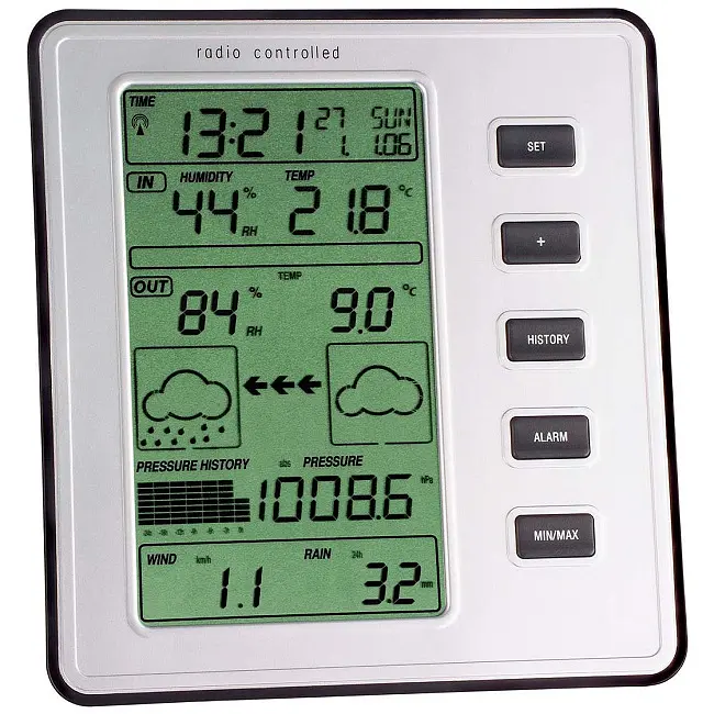 Производитель: TFA Dostmann GmbH & Co.KG, ГерманияОсобенности:Комбинированный датчик, включающий датчик температуры / влажности, дождемер и измеритель ветраБеспроводная передача (макс. 100 м) наружной температуры и влажности, количества осадков и скорости ветра. Индикация температуры и влажности в помещении. Абсолютное и относительное атмосферное давление, барометрический прогноз погоды и динамика атмосферного давления, индикация гистограммы и история последних 24 часовТемпература охлаждения ветром и точка росыМакс.мин-функция со временем и датой записиПрограммируемые функции сигнализации для определенных погодных условий, таких как температурный сигнал, штормовое предупреждение и т. д.Радиоуправляемые часы с будильником и датой, часовой пояс ± 12 часовПодсветкаИзмеряйте ветер и погоду самостоятельно, это возможно с помощью «STRATOS». Беспроводная метеостанция имеет комбинированный передатчик с тремя внешними датчиками: датчик-термогигрометр для контроля температуры и влажности наружного воздуха, датчик дождя, который надежно информирует вас о количестве осадков, и датчик ветра для определения силы ветра в месте установки. Данные отправляются на базовую станцию и отображаются на дисплее. Кроме того, встроенный электронный барометр измеряет давление воздуха и, основываясь на изменениях, символ погоды предоставляет прогноз на будущую погоду. Текущее давление воздуха отображается в виде абсолютного и относительного значения, график последних 24 часов можно наблюдать на гистограмме и, таким образом, получить более точное представление о погоде. Вы также можете отслеживать температуру и влажность в помещении и контролировать климат в помещении с помощью целевого отопления и вентиляции. Метеостанция предлагает множество дополнительных функций и информации. Вы можете установить пределы сигнала тревоги, получить максимальные и минимальные значения с указанием времени и даты записи, рассчитать точку росы и температуру охлаждения ветром. Текущее время и дата принимаются через радиосигнал DCF-77. Будильник всегда разбудит вас в нужное время.