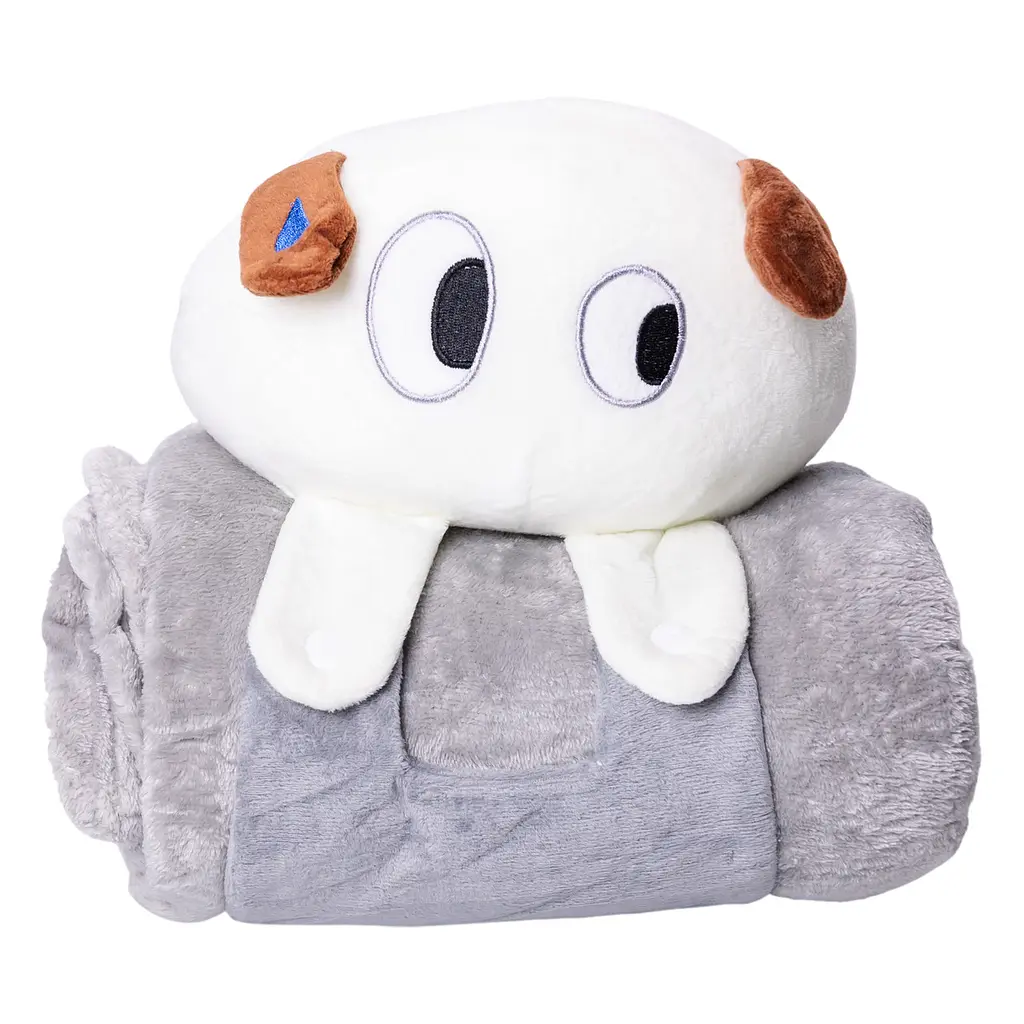 Игрушка выполнена в виде волшебной собачки, внутри спрятан мягкий плюшевый плед размером 120×160 см. Благодаря удобной застежке плед легко достается и складывается назад, превращая игрушку в стильную и компактную подушку.